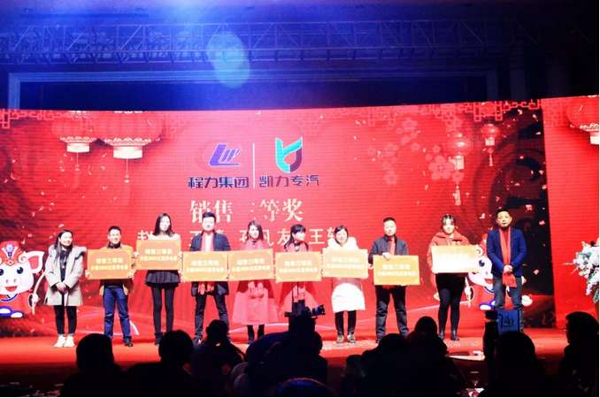 年會上兩位梁總,馬總,柏總以發放大紅包的形式鼓勵和感謝員工們為凱力公司的發展作出的巨大貢獻。 總結2018,規劃2019。凱力專汽調整了戰略規劃,面對市場環境及用戶需求,提升了產品技術、升級了企業服務,在市場競爭日益激烈的形勢下,依然保持著強有力的業績。 此次年會凱力專汽公司還為員工提供了一個展示自我和團隊的舞臺,各部門的伙伴們帶來了形式各異、讓人目不暇接的表演,唱歌、跳舞、小品、魔術等,中間還穿插了讓人期待的抽獎環節,大家用心投入其中,呈現出凱力這個大家庭的歡樂盛宴。這些不僅給大家帶來了歡聲笑語同時也讓同事之間彼此的心更加貼近。隨著三等獎、二等獎、一等獎、特等獎的抽取不斷掀起年會的高潮。公司領導與員工親情互動、激動人心的抽獎活動,讓歌聲、掌聲、歡呼聲一直在會場上蕩漾。