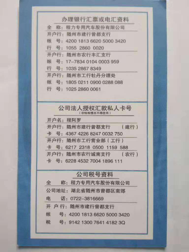 湖北程力公司財務重要通知:本月20號以后暫停開票,增值稅稅率,四月起將由16%改成13%。請:之前與我司有合同16%稅率發票的客戶,將款項轉入我公司賬戶,以便我司近期將16%發票開給您。 合同簽約未付款或只付了預付款的,發票稅率自動改成13%,我司不承擔差價!減稅為國家惠民政策,企業進、銷項及納稅率皆下調,并沒有產品降價的說法。請大家理性認知國策、多多體諒企業供應商。 |