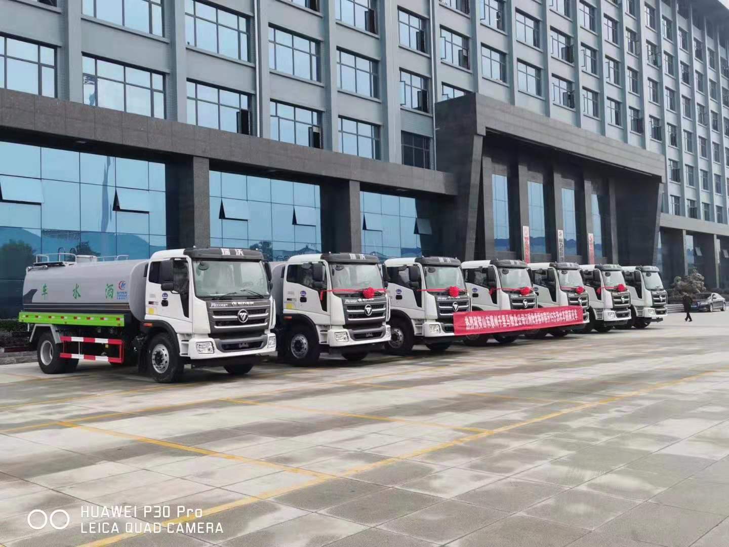 熱烈祝賀山東德州物業有限公司一次性采購7臺福田瑞沃15方灑水車圓滿交車