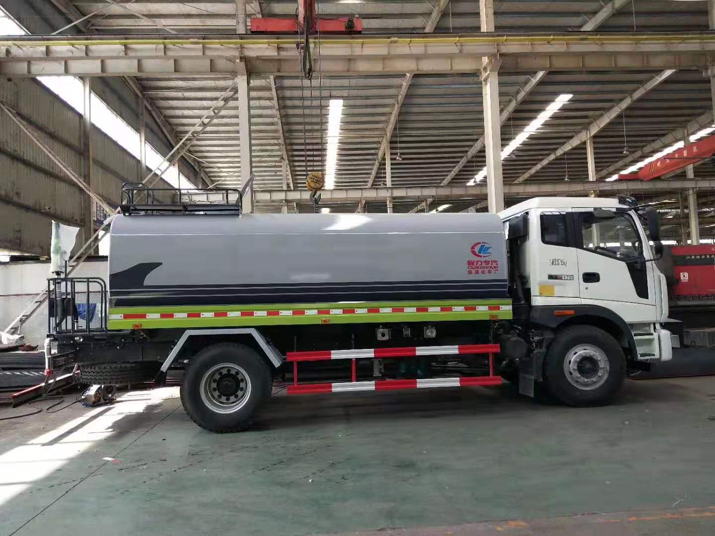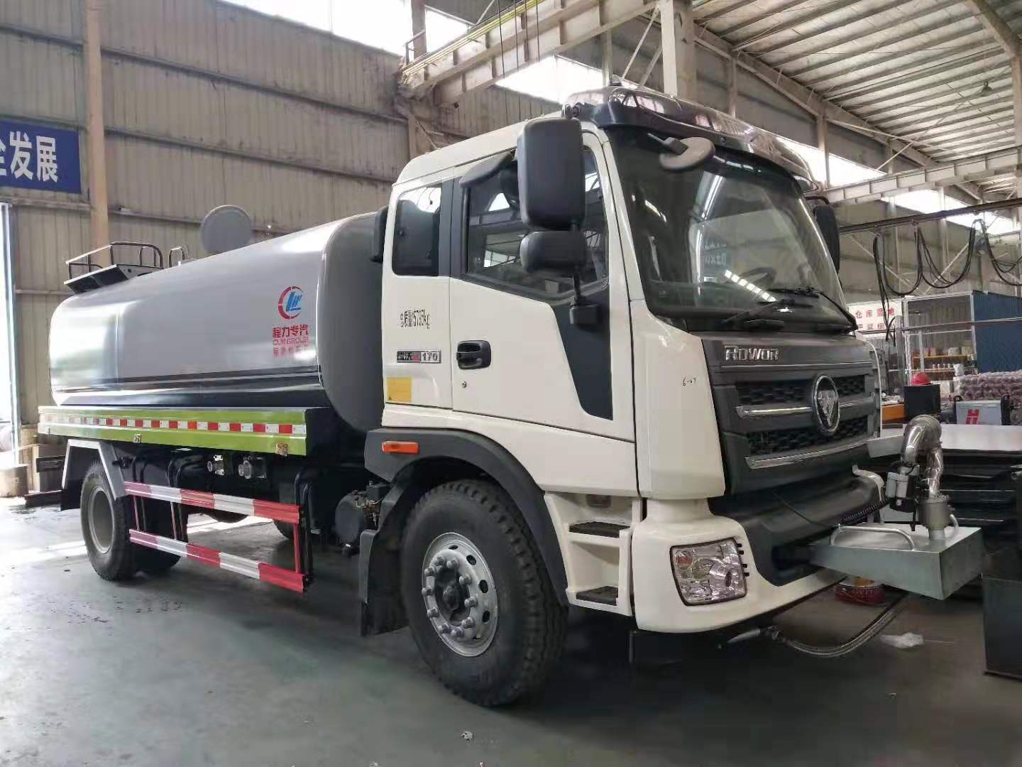 福田瑞沃15噸灑水車罐體采用4mmQ235材質碳鋼板一次卷壓成型,完全做到無縫成型。此款灑水車水泵垂直吸程≧7米,前沖灑水寬度≧16米。罐體內設多道防波隔板,采用高壓氣體試漏檢測,使罐體具有強度高,重心穩,車輛運載安全平穩。