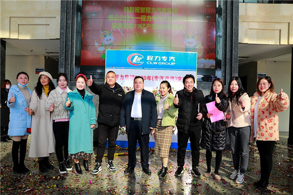 集團公司高層組織在家的主要領導,以及各部門的中層干部及負責人,各直屬廠、專業廠、集團成員廠總經理,戶主經理與各銷售精英團隊負責人,程力汽車集團簽約網紅共計200余人,在程力總部八號樓迎賓大廳共同見證了超額完成75億專汽產值的祝賀儀式。