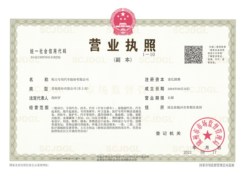 程力最新營業執照,程力專用汽車股份有限公司營業執照,程力新版營業執照,湖北程力汽車營業執照程力汽車官網:www.dongbeihu.net.cn,程力專汽政府和事業單位專用汽車…