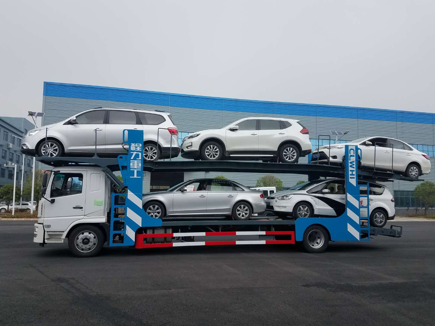 湖北程力公司自有生產車間和生產資質,專業制造銷售車輛運輸式半掛車,單車,6車位8車位