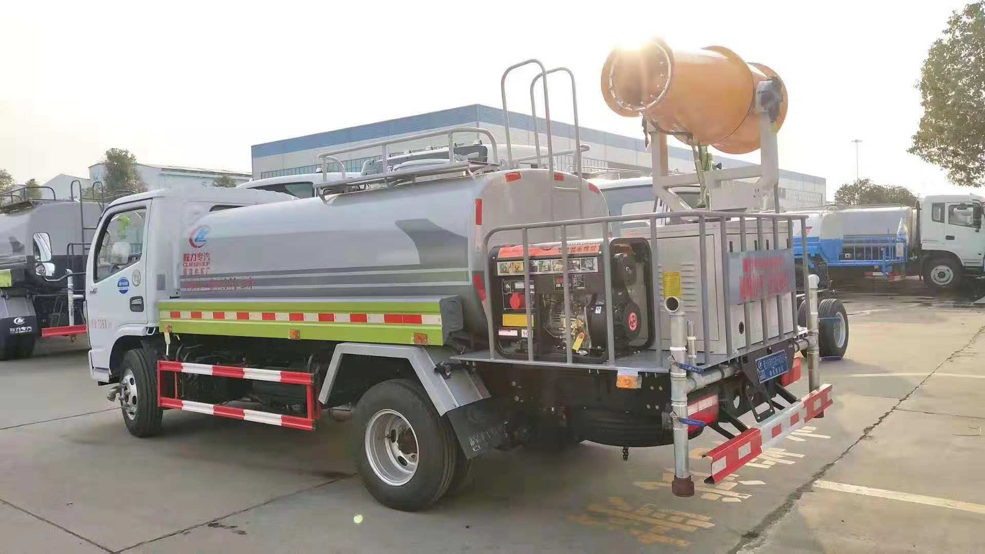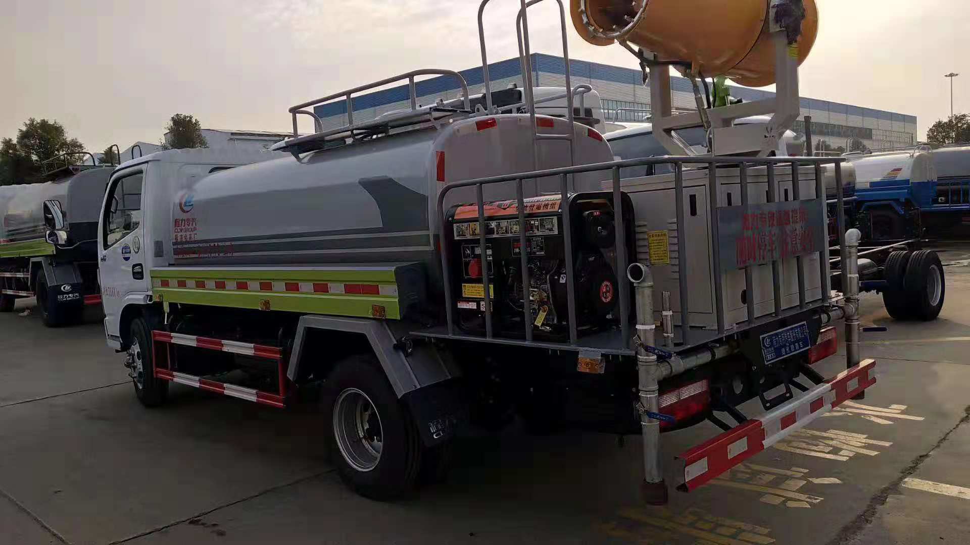 國六新規排放標準,朝柴102馬力,前沖(噴)、后灑、帶側噴(花灑)、帶后工作平臺、平臺上安裝綠化灑水高炮(炮噴射形狀可調節:直沖、大雨、中雨、毛毛雨、霧狀、可連續調節,360°旋轉),配消防接口,自流閥,濾網,帶自吸自排功能。