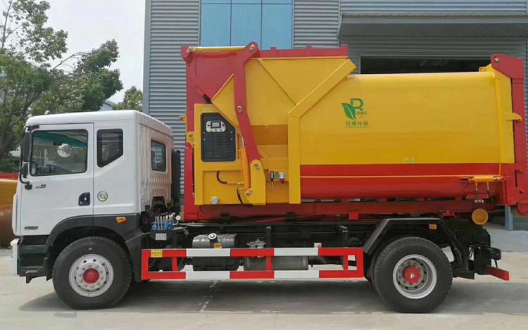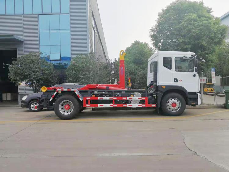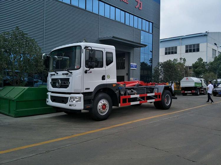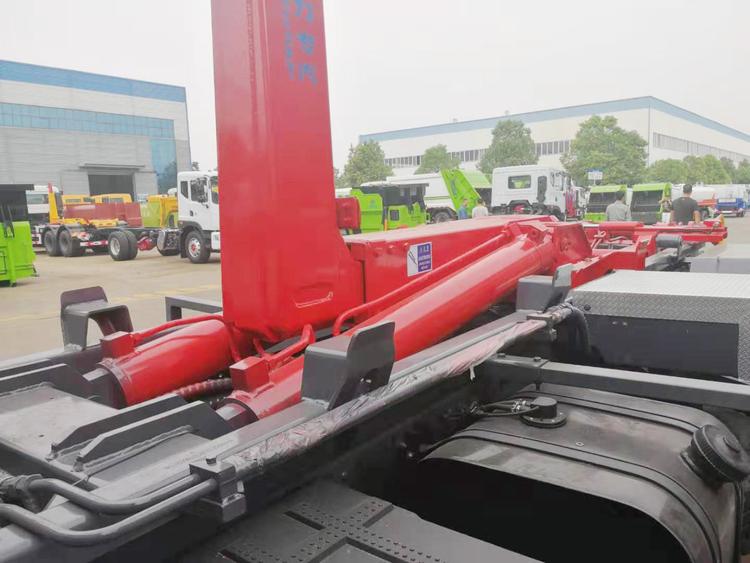 東風多利卡D9勾臂式垃圾車,承載重量12-16噸(垃圾加箱體)?配套容積8-12方移動壓縮垃圾站或15-18方勾臂垃圾箱。國六排放,柴油發動機。伸縮式套臂,提升重量12噸、16噸可選,加強型副梁,鑄鋼尾托輪,電控+手動操控,帶鎖緊架、鎖緊油缸。液壓完成上箱+下箱+鎖緊+自卸等作業。尾部帶液壓后支腿。 帶自動裝卸垃圾箱功能,配10-16立方鉤臂垃圾箱或者移動壓縮垃圾站。一車可以配多個垃圾廂,帶自卸功能。 | 湖北程力國六D9勾臂垃圾車(車廂可卸式垃圾車)程力威牌CLW5180ZXXE6型車廂可卸式垃圾車圖片價格: