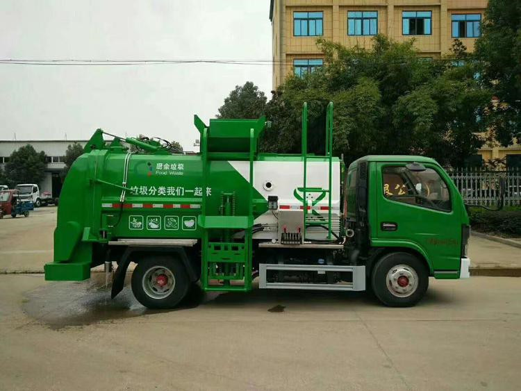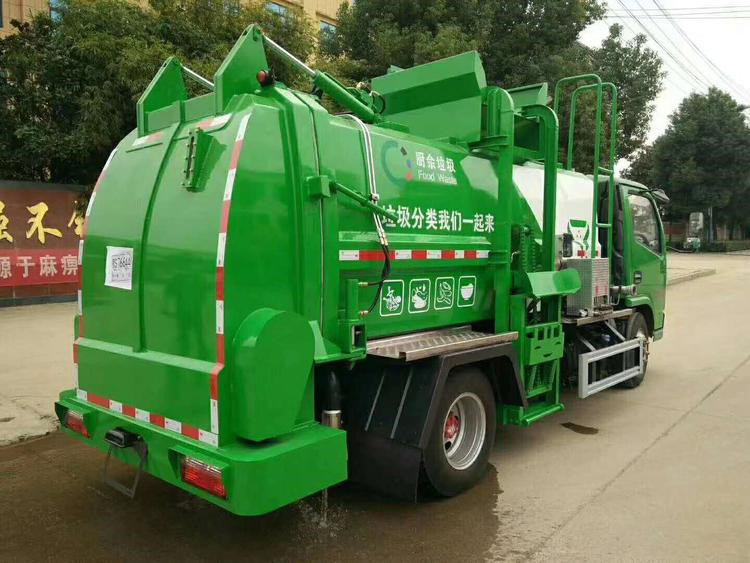 餐廚垃圾車,又稱餐余垃圾車、余廚垃圾車或者泔水車,是用于收集和運輸生活垃圾、食品垃圾(泔水)及城市淤泥的專用車輛,改裝部分具有裝、卸垃圾自動化程度高、工作可靠、密封性好、裝載容積大、操作簡便、作業過程密閉,無污水泄露和異味的散發,環保性好等特點?膳溲b載不同規格的標準垃圾桶,具有廣泛的適用性。 該車型外形美觀,性價比高、安全可靠、駕駛便捷。主要用于收集與轉運餐飲業、賓館、單位食堂等產生的餐廚垃圾,也可用于收集與轉運居民小區廚余和生活垃圾。 上裝由箱體、后門機構、密封鎖緊機構、推板機構、掛桶機構及操縱機構組成。 餐廚垃圾車主要性能及配置: 固液分離: 將桶裝餐廚泔水垃圾經專用提升架緩緩上提,在車頂部倒入車廂內,被投放的垃圾經過強有力的推板擠壓,垃圾箱底部與推鏟板面設置大量過濾孔,可真正實現箱內餐廚垃圾固液的初步分離,被分離的液體進入箱體底部的污水箱,固體垃圾被壓縮儲存在罐體,體積變小,如此反復待裝滿后送至餐廚垃圾資源優化處理廠卸料。餐廚垃圾裝載由垃圾桶提升系統完成,該系統具有垃圾桶鎖止結構,裝卸安全可靠。垃圾桶與垃圾投入口銜接好,保證裝卸過程中餐廚垃圾不溢撒、不遺漏。垃圾投入口與推板之間有足夠距離,推板與罐體內表面設有密封裝置,避免餐廚垃圾投入過程及分離過程中溢到推板后方。 液壓系統由泵、液壓閥和順序閥以及各種功能的液壓油缸、高低壓管路組成。關鍵部件可選用原裝進口,保證產品工作可靠、安全 罐體內分上、下兩層,下層為固液分離后污水收集箱,污水箱兩頭高,中間低,設有排污口,以保證污水排放干凈。 湖北程力國六5方多利卡福瑞卡餐廚垃圾車(廂式方罐)程力威牌CLW5073TCA6型餐廚垃圾車CLW5040TCALS6型餐廚垃圾車多方位圖片: