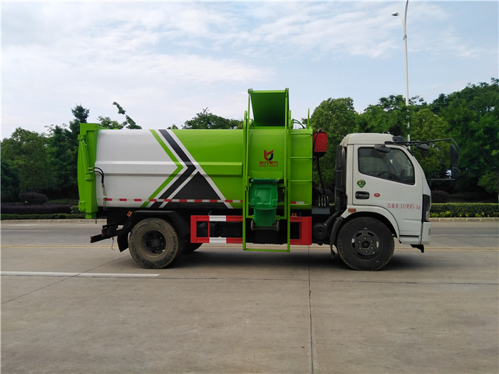 自裝卸式垃圾車優點: 1,壓縮式垃圾車的換代產品; 2,容積大7.立方,3360軸距壓縮車裝載量240升垃圾桶120桶左右. 3,自重輕,燃油經濟性高, 4,故障率低,售后率低,壓縮垃圾車液壓系統復雜,該車型液壓系統簡單,并配置高壓過濾器,保護液壓系統,只有提升機油缸,推板油缸,后面舉升油缸。 5,該車型配置液壓反向鎖死機構,并使用硅膠密封條,可杜絕箱內壓縮垃圾時,后門開縫漏污水,越壓縮后門鎖死越緊,后門采用壓縮垃圾站式加強型后門,抗擠壓抗變形。 湖北程力國六東風大福瑞卡(多利卡)側裝掛桶自裝卸式垃圾車程力威牌CLW5122ZZZ6SL型自裝卸式垃圾車圖片: |