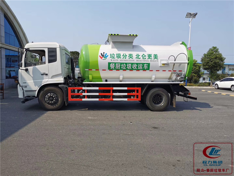 12立方東風(fēng)天錦餐廚垃圾車(chē)配置:手動(dòng)和電動(dòng)兩種操作方式,揚(yáng)州中梅多路換向閥,合肥長(zhǎng)源液壓油泵,國(guó)內(nèi)知名液壓油缸,翻轉(zhuǎn)機(jī)構(gòu)配備240L垃圾桶,后蓋開(kāi)啟排料方式和罐體舉升排料方式。餐廚垃圾車(chē)裝載由垃圾桶提升系統(tǒng)完成,該系統(tǒng)具有垃圾桶鎖止結(jié)構(gòu),裝卸安全可靠。垃圾桶與垃圾投入口銜接好,保證裝卸過(guò)程中餐廚垃圾不溢撒、不遺漏。 液壓系統(tǒng)由泵、液壓閥和順序閥以及各種功能的液壓油缸、高低壓管路組成。關(guān)鍵部件可選用原裝進(jìn)口,保證產(chǎn)品工作可靠、安全。承載餐廚泔水容積為圓形罐體,工作時(shí)通過(guò)提升機(jī)將餐廚垃圾桶提升至罐體投料口;將桶內(nèi)垃圾倒進(jìn)罐體內(nèi),待罐體內(nèi)部垃圾積攢滿后,將車(chē)輛開(kāi)至處理廠;通過(guò)車(chē)體外部手動(dòng)操作或駕駛室內(nèi)部電控旋鈕操作系統(tǒng)開(kāi)區(qū)液壓后蓋,泄出罐體內(nèi)部的混合垃圾,待罐體內(nèi)部無(wú)固液垃圾流出后;操作罐體舉升功能將殘余垃圾泄出。為防止污染環(huán)境和遺留異味,每日工作完成后應(yīng)用清水將罐體內(nèi)部清洗干凈。