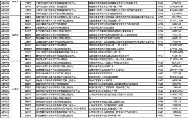 汽車浙江省、安徽省、福建省服務站通訊錄: