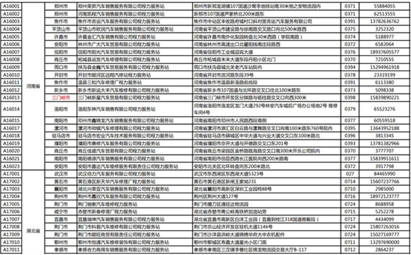 汽車湖北省、河南省、廣東省服務站通訊錄: