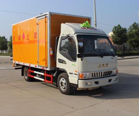 專用功能說明: 1、爆破器材運輸車底盤的型號可分為:東風、江鈴、江淮、奧鈴、時代、歐曼、慶鈴、解放等。驅動形式可分為:雙驅動和四驅動,按額定載質量有0.5噸—9.9噸(國防科工委要求最大上戶噸位不超過10噸)。 2、廂體分為兩部分:A:運輸炸藥;B:運輸雷管(抗暴容器);C:炸藥,雷管同時運輸(廂體必須隔倉,分倉運輸,加裝抗爆容器)。廂體為雙層金屬骨架結構,外部為冷扎鋼板,內壁采用鋁合金板蒙面,夾層為隔熱阻燃材料填充。設置對開門,如需安裝抗暴容器則增開側門,側壁設有防雨功能自然通風窗口,以使廂內外空氣流動,廂體內部做防靜電處理,廂體底部與廂內前部鋪有阻燃導靜電膠板,并與底盤等電位連接,通過車輛后端的導靜電裝置與大地相連,可防止靜電火花的產生和車輛靜電及時釋放,提高爆破器材運輸車的安全性。廂體內部前面和側面裝有固定拉環,與捆綁帶使用捆綁貨物以避免移動,保證安全。 3、 感煙報警器:是感測車廂內火情的專用裝置,安裝在車廂內頂部,并與駕駛室內報警裝置連接,當有火情煙霧出現,在駕駛室進行蜂鳴報警通知駕駛員,保證及時消除險情。 4、防盜報警器:為了保證安全,在車廂后方和側面開設有門,在各門器框上方安裝有門磁開關報警器(根據用戶要求選裝防盜監視器。行車記錄儀等)當廂門被打開時,駕駛室內的蜂鳴器發出報警聲音,不使用時可將駕駛室內的控制開關關閉?杀WC在行駛過程中,整車始終處于受控狀態。 5、整車發動機排氣裝置采用前置式,并安裝有排氣火花熄滅器(防火罩),防止熱源對爆炸物產生不良影響。 6、底盤上裝有兩條拖地導靜電膠帶,廂體外側安裝示廓標記燈以及手提滅火器等安全裝置。 7、車身顏色為黃色,并有“嚴禁煙火”和“爆”字樣,貼有反光標識。 |