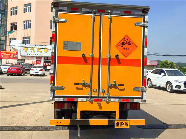 1、爆破器材運輸車底盤的型號可分為:東風、江鈴、江淮、奧鈴、時代、歐曼、慶鈴、解放等。驅動形式可分為:雙驅動和四驅動,按額定載質量有0.5噸—9.9噸(國防科工委要求最大上戶噸位不超過10噸)。 2、廂體分為兩部分:A:運輸炸藥;B:運輸雷管(抗暴容器);C:炸藥,雷管同時運輸(廂體必須隔倉,分倉運輸,加裝抗爆容器)。廂體為雙層金屬骨架結構,外部為冷扎鋼板,內壁采用鋁合金板蒙面,夾層為隔熱阻燃材料填充。設置對開門,如需安裝抗暴容器則增開側門,側壁設有防雨功能自然通風窗口,以使廂內外空氣流動,廂體內部做防靜電處理,廂體底部與廂內前部鋪有阻燃導靜電膠板,并與底盤等電位連接,通過車輛后端的導靜電裝置與大地相連,可防止靜電火花的產生和車輛靜電及時釋放,提高爆破器材運輸車的安全性。廂體內部前面和側面裝有固定拉環,與捆綁帶使用捆綁貨物以避免移動,保證安全。 3、 感煙報警器:是感測車廂內火情的專用裝置,安裝在車廂內頂部,并與駕駛室內報警裝置連接,當有火情煙霧出現,在駕駛室進行蜂鳴報警通知駕駛員,保證及時消除險情。 4、防盜報警器:為了保證安全,在車廂后方和側面開設有門,在各門器框上方安裝有門磁開關報警器(根據用戶要求選裝防盜監視器。行車記錄儀等)當廂門被打開時,駕駛室內的蜂鳴器發出報警聲音,不使用時可將駕駛室內的控制開關關閉?杀WC在行駛過程中,整車始終處于受控狀態。 5、整車發動機排氣裝置采用前置式,并安裝有排氣火花熄滅器(防火罩),防止熱源對爆炸物產生不良影響。 6、底盤上裝有兩條拖地導靜電膠帶,廂體外側安裝示廓標記燈以及手提滅火器等安全裝置。 7、車身顏色為黃色,并有“嚴禁煙火”和“爆”字樣,貼有反光標識。 |