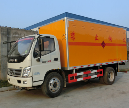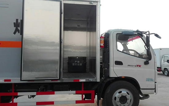 1、爆破器材運輸車底盤的型號可分為:東風、江鈴、福田、慶鈴、奧鈴等。驅動形式可分為:雙驅動和四驅動,按額定載質量有0.2噸—9.9噸(國防科工委要求最大上戶噸位不超過10噸)。 2、廂體分為兩部分:A:運輸炸藥;B:運輸雷管(防爆罐或防爆箱);C:炸藥,雷管同時運輸(廂體必須隔倉,分倉運輸,加裝防爆罐或防爆箱)。廂體為雙層金屬骨架結構,外部為冷扎鋼板,內壁采用鋁合金板蒙面,夾層為隔熱阻燃材料填充。設置對開門,如需安裝抗暴容器則增開側門,側壁設有防雨功能自然通風窗口,以使廂內外空氣流動,廂體內部做防靜電處理,廂體底部與廂內前部鋪有阻燃導靜電膠板,并與底盤等電位連接,通過車輛后端的導靜電裝置與大地相連,可防止靜電火花的產生和車輛靜電及時釋放,提高爆破器材運輸車的安全性。廂體內部前面和側面裝有固定拉環,與捆綁帶使用捆綁貨物以避免移動,保證安全。 3、 感煙報警器:是感測車廂內火情的專用裝置,安裝在車廂內頂部,并與駕駛室內報警裝置連接,當有火情煙霧出現,在駕駛室進行蜂鳴報警通知駕駛員,保證及時消除險情。 4、防盜報警器:為了保證安全,在車廂后方和側面開設有門,在各門器框上方安裝有門磁開關報警器(根據用戶要求選裝防盜監視器。行車記錄儀等)當廂門被打開時,駕駛室內的蜂鳴器發出報警聲音,不使用時可將駕駛室內的控制開關關閉?杀WC在行駛過程中,整車始終處于受控狀態。 5、整車發動機排氣裝置采用前置式,并安裝有排氣火花熄滅器(防火罩),防止熱源對爆炸物產生不良影響。 6、底盤上裝有兩條拖地導靜電膠帶,廂體外側安裝示廓標記燈以及手提滅火器等安全裝置。 7、車身顏色為黃色,并有“嚴禁煙火”和“爆”字樣,貼有反光標識。 |