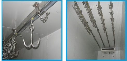 肉鉤車專用配置:頂部導軌滑道、不銹鋼肉鉤。 肉鉤為不銹鋼的材質,表面拋光處理;肉鉤導軌,金屬材料制成的槽或脊,可承受、固定、引導移動裝置或設備并減少其摩擦,廂體頂部預埋槽鋼加固處理。 |  |