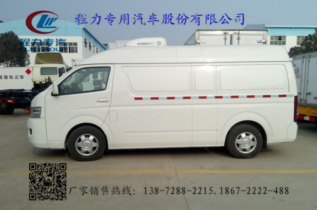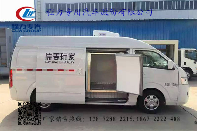 1.底盤配置:采用福田G7的國五面包車身,配置北汽福田汽車股份有限公司4Q20M國五的發動機,130馬力,195R輪胎 ,5檔變速,駕駛室空調,帶動力轉向,帶OBD,帶ABS,手剎和變速箱操作桿在儀表盤的下方,開車新手都非常好操作,總質量3150kg,額載875kg,整備2145kg。 2.上裝配置:廂體采用聚氨酯一次發泡成型,冷藏廂內部尺寸:長2.9米,寬1.3米,高1.4米,廂體有效空間大,有5~6立方,冷藏廂無油漆,無縫隙,無異味,花紋底板或者玻璃鋼(選裝T型材通風槽)后面配置雙層門,不銹鋼門鎖件,不銹鋼門框,冷藏廂和駕駛室用活動隔板隔開,既美觀又為駕駛室后面隔開一個小型雜物間,-5~-18度度制冷機組可選。 3.其他說明:該款面包冷藏車非常適合做藥品,疫苗冷藏運輸車,城市海鮮,蔬果,肉類等冷鏈快運用途,最高時速高達120公里每小時
