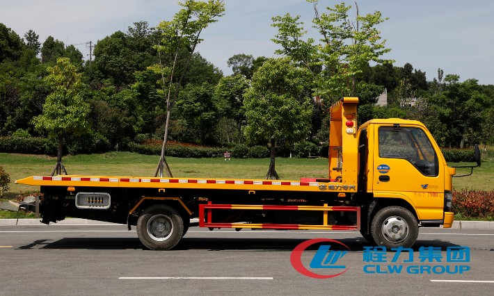 湖北程力國六五十鈴黃牌一拖二清障車(5.6米板長)程力威牌CLW5070TQZQ6型清障車廠家配置: 湖北程力五十鈴黃牌一拖二清障車配置: 采用五十鈴單排可前翻駕駛室,五十鈴120馬力發動機,5檔箱,油剎,帶ABS,冷暖空調,電動玻璃,中控鎖,7.00R16鋼絲胎。 4噸上裝4噸卷揚,25米鋼絲繩,雙側聯動操作,有花紋板及壓制板可選,配輔助小車一套,四根捆綁器。