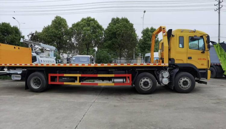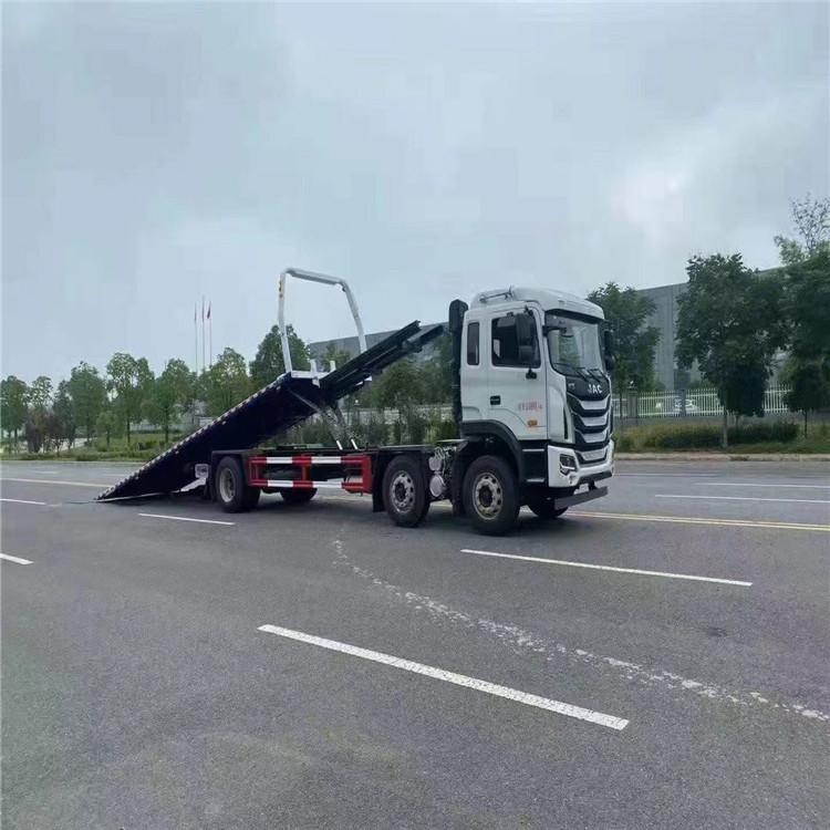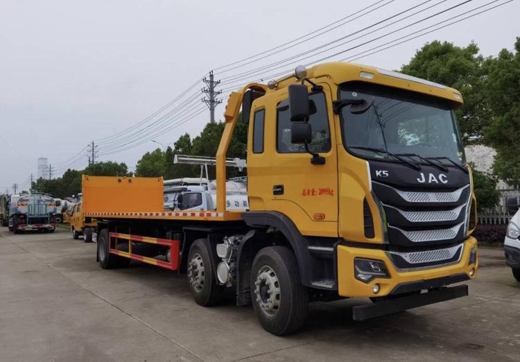 江淮K5小三軸,錫柴290馬力,法士特8檔變速箱 11.00輪胎,280大梁,空調(diào),ABS,行駛記錄儀,電動玻璃升降,電動翻轉(zhuǎn),氣囊座椅。 12噸上裝,12噸后托臂,重心低,受力平均,平板尺寸9.6米,平板寬2.55米,10噸液壓卷揚(yáng)。 湖北程力國六江淮K5小三軸平板清障車(平板長度9.6米)程力牌CL5250TQZH6ZQ型清障車圖片價格: