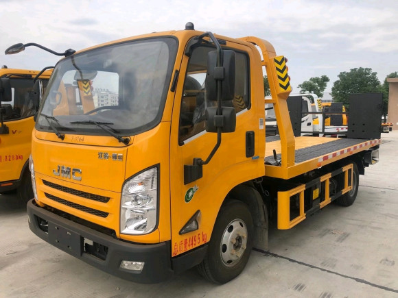 備注:ABS型號:APG3550500A,WBTL ESC610,VIE ABS-II;ABS生產企業:浙江亞太機電股份有限公司,蕪湖伯特利電子控制系統有限公司,浙江萬安科技股份有限公司;發動機凈功率值:JX4D30A6H發動機最大凈功率:93kw,JX4D306H發動機最大凈功率:110kw;所用材料材質、連接方式以及后部防護裝置的主要尺寸參數(斷面尺寸和離地高度):防護材料:Q235A碳鋼,連接方式:左右側面及后下部防護均采用焊接連接,后下部防護斷面尺寸(mm):100×50,后下部防護離地高度(mm):390;專用功能及裝置:此車為道路清障專用車輛,專用裝置為平板機構和絞盤;背載質量(kg):500;選裝不同的后尾部樣式.