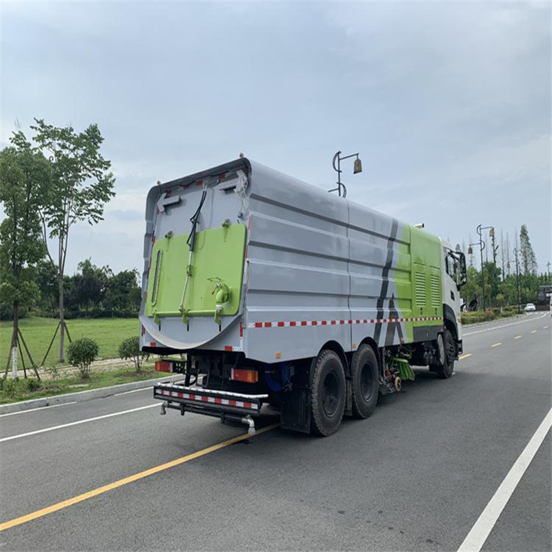 東風天龍洗掃車副發動機驅動風機和高壓水泵,副發動機采用東風康明期6缸柴油發動機。 風機用8.0高壓離心風機,效率高、風量大,最高風量達23500m3/h。 東風天龍洗掃車高壓水泵采用同際知名T7012IR 型柱塞柱,流量合適,壓力高,允許最高壓力達10MPa,清水箱充分利用了車載空間,容積大,容積達12m3。 東風天龍洗掃車垃圾箱采用單層不銹鋼結構,傾翻卸料,帶高壓位自潔裝置。自潔裝置可在垃圾箱卸料時幫助卸料,清洗垃圾箱內部。 東風天龍洗掃車左右立掃為單掃盤,減少了掃刷數量和掃刷消耗量,能降低使用成本。左右立掃分開控制,可實現左掃、右掃和全掃等不同作業模式。寬吸嘴的吸口寬度達到2418mm,確保作業總寬度大于3.5mm。 湖北程力國六東風天龍后雙橋大型洗掃4個高度可調的吸嘴輪,能方面調整和保證吸嘴與路面間的合理間隙。吸嘴內高有噴水桿,盡可能多地將高壓洗滌噴嘴布置在吸嘴內部,不但清洗效果好,還能最大限度減少高壓水氣流沖起污物產生的二次污染。左右噴水桿安裝在吸嘴上,隨吸嘴升降,結構簡單緊湊,保證噴水桿的離地高度固定不變,達到最佳清洗效果。 東風天龍洗掃車開式液壓系統驅動左右立掃升降、左右掃肋旋轉、吸嘴升降、垃圾箱后門開閉、垃圾箱傾翻復位等機械動作。底盤變速箱側取力器驅動低壓水泵,實現灑水車的低壓沖洗功能。一鍵式作業起動和停機操作。 東風天龍大型洗掃車具有路面清洗、路面清掃、路緣清洗、路緣和路緣石立面洗刷、低壓沖洗、噴霧除塵等多功能。有“全洗掃”、 “左洗掃”、 “右洗掃”、 “全掃”、 “左掃”、 “右掃”6種作業模式可選擇。選擇“全洗掃”模式清洗廣場和路面,清洗效率高效果好,洗凈率達90%以上。選擇“左洗掃”或“右洗掃”模式清洗路面和路緣、洗刷路緣石立面。需要進行路面清掃或路面保潔作業時,可選擇掃路模式。需要噴霧除塵時,可開啟噴霧裝置,進行噴霧除塵作業。可以像灑水車一樣對路面進行低壓沖洗作業。 東風天龍大型洗掃車適用于城市道路、高速公路、廣場、機場、碼頭、遂道、橋梁、隔離墻避、路緣和路緣石立面的機械化清洗、清掃、噴霧降塵等清潔作業。
