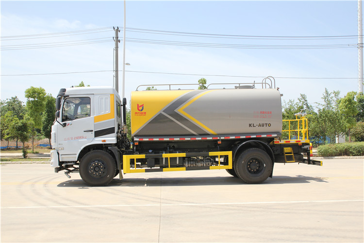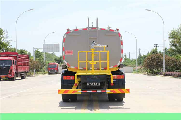 國六東風華神14方綠化噴灑車(灑水車)新款國六東風華神灑水車 程力威牌14-15方綠化噴灑車! 東風華神F5國六14-15方綠化噴灑車灑水車技術參數 1.總質量:18T,底盤采用東風華神F5駕駛室4500mm軸距國六排放二類底盤。 2.發動機額定功率:147KW(玉柴200馬力)或者康明斯230馬力 3.罐體有效儲水容積:12.04m3 4.輪胎規格:10.00R20 5.整車參考外形尺寸:7970*2550*3300 mm 6.罐體鋼板厚度:4mm 7.車輛前部配有四個鋁合金噴嘴,可作上、下、左、右方向調節。車輛后部配有兩個鋁合金噴頭。各噴嘴(頭)均可單獨進行手柄開關控制。 8.高壓水槍可以水平360°回轉,可以作上下150°傾斜,具有水柱擴散調節功能。 9.灑水寬度≥15 m 10.高壓水槍射程≥25--45 m 11.自吸深度≥7 m 12.霧炮射程≥25 m 13.灑水量滿足≥0.5 L/m2 14.沖洗速度選擇:二檔15-18 km/h,三檔23-25 km/h 15.發動機在運轉情況下踏下離合器能進、出水泵取力器。