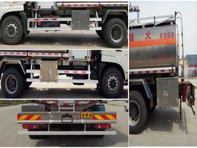 備注 | 1、該車適用于危險品運輸。類項號:3;罐體有效容積:5.09立方米,罐體外形尺寸 (長×寬×高) (mm):4000×1750×1150(罐體前部900mm的位置安裝加油機,當加油機裝置選裝下掛式時,右側防護由工具箱代替,且罐體尺寸為4000mm×1700 mm×1100 mm)。2、該車可裝配;恒和嘉華牌 ,伯萊牌,正星牌,恒山牌,華特牌數控加油機,其型號對應為: SKES-1112,SKDS-2001A,SC20D1110F,HS1812B,HT-YV60E,對應生產廠家為:恒和嘉華科技有限公司 ,上海伯萊機械有限公司,正星科技有限公司,托肯恒山科技(廣州)有限公司,隨州市華特專用設備有限公司。3、車輛顏色和文字噴涂位置可變化。4、防護材料:Q235A碳鋼,連接方式:左右側面及后下部防護均采用焊接連接,后部防護斷面尺寸(mm):200×50,后部防護離地高度(mm):530。5、隨底盤選裝駕駛室,僅選用裝子午胎型號(7.00R16LT 14PR),限速裝置,輔助制動裝置和前盤制動器的底盤;該車應裝具有衛星定位功能的行駛記錄儀。6、ABS廠家及型號:襄陽東風隆誠機械有限責任公司/ABS/ASR-24V-4S/4M。7、危險貨物運輸車輛的車輛類型(FL型車輛)。 |